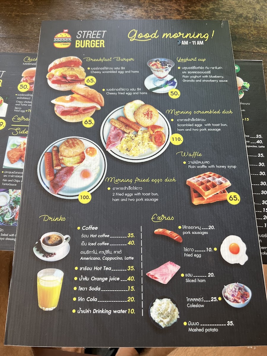 As you explore the menu, you'll find an array of delicious options, including the crowd-favorite pork and fish burgers, both served with crispy fries. With prices starting as low as 39 baht, Yousaybuy Cafe ensures that enjoying a hearty meal doesn’t break the bank.